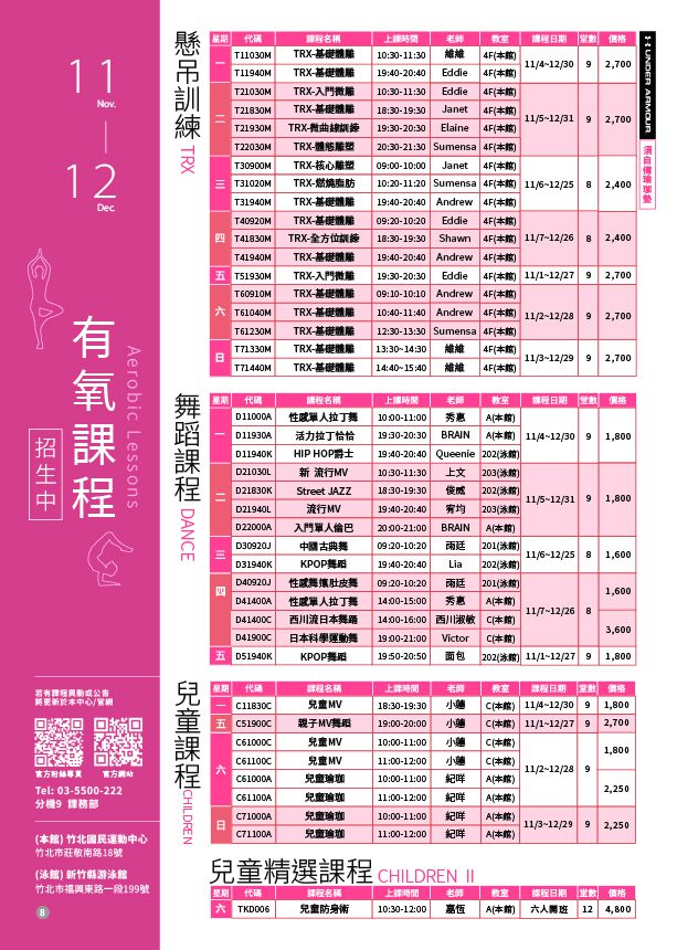 • 運動中心課程