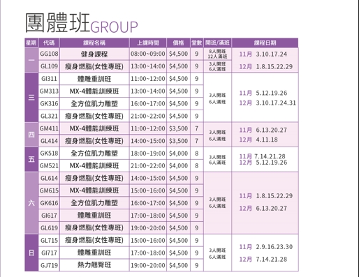 運動中心課程