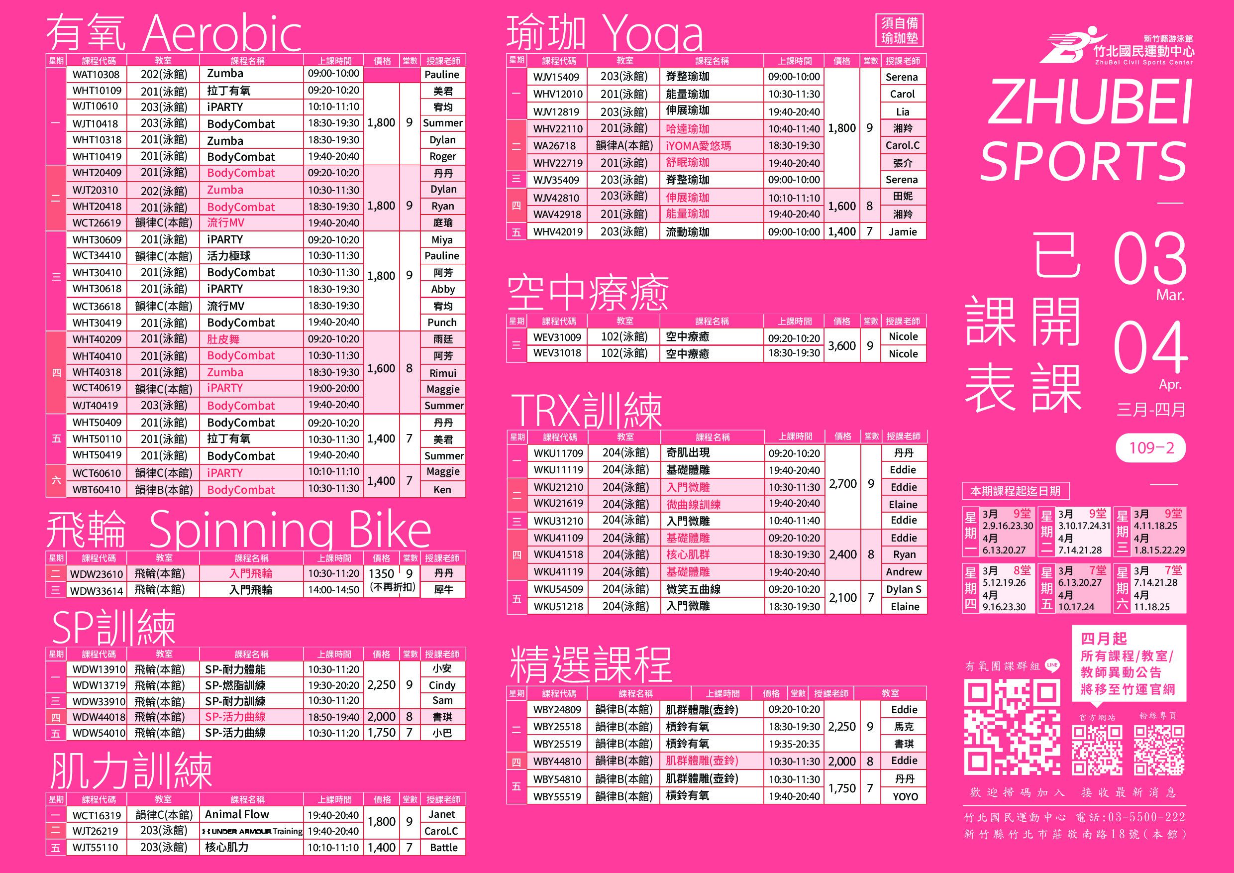 • 有氧課程異動公告