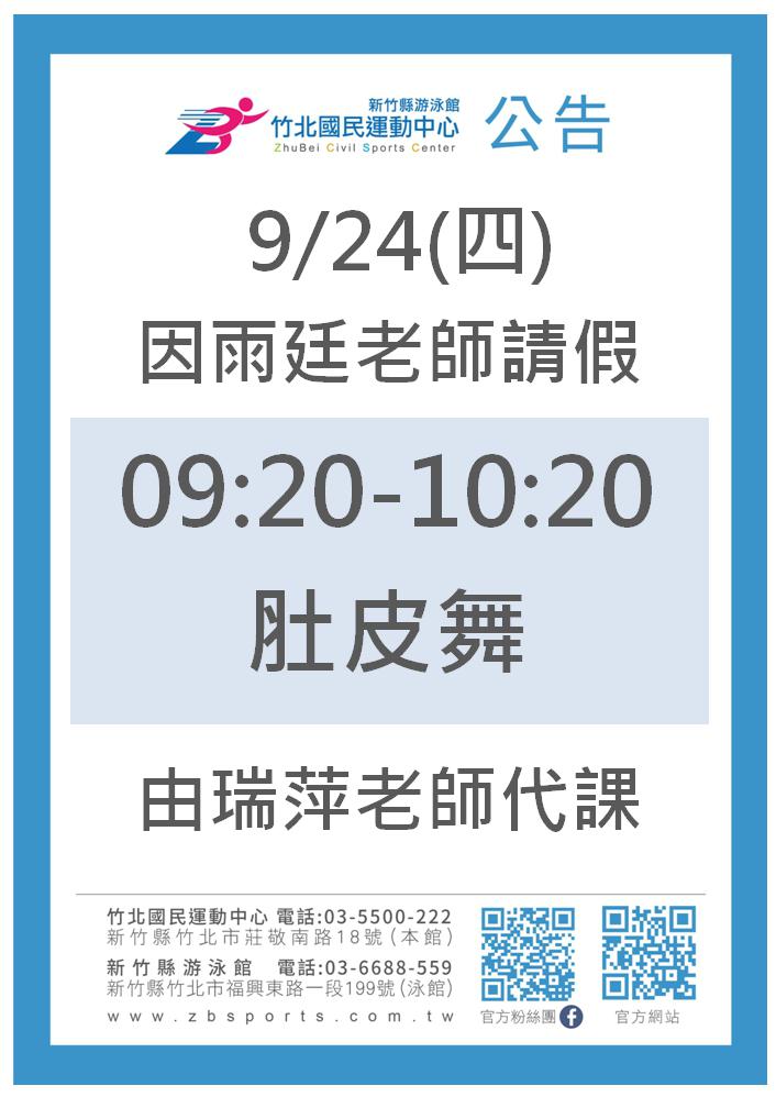 有氧課程異動公告