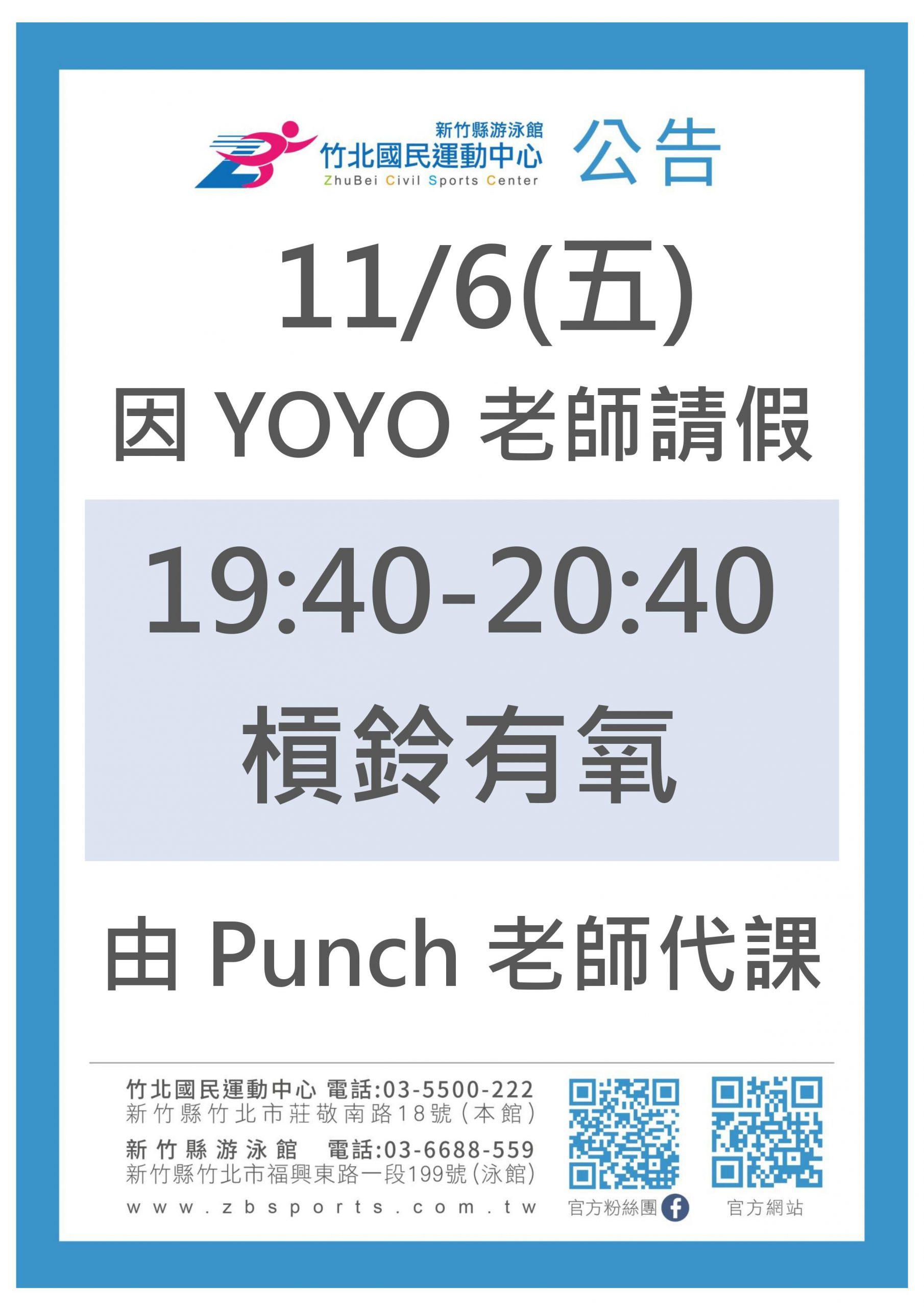 1106YOYO老師請假