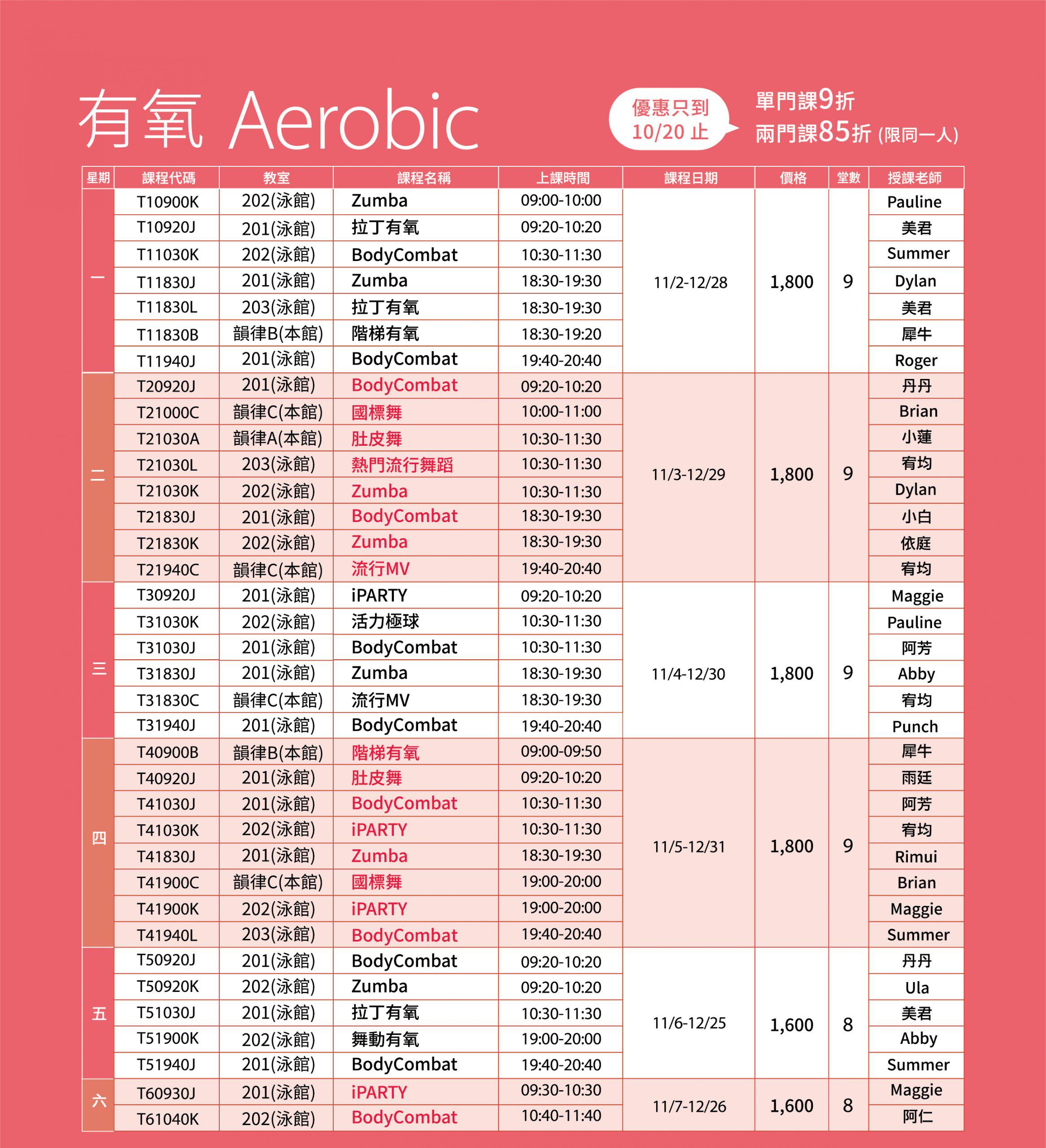 • 有氧課程異動公告