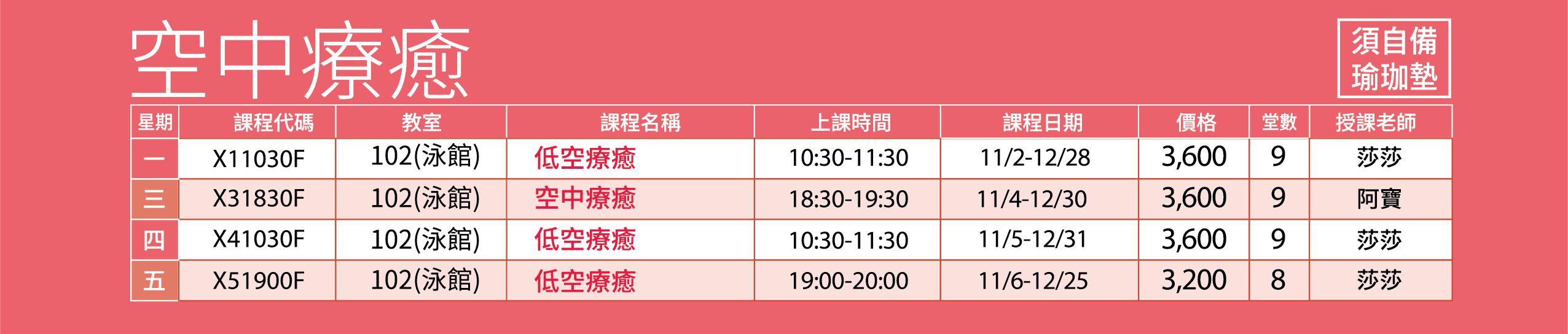 有氧課程異動公告