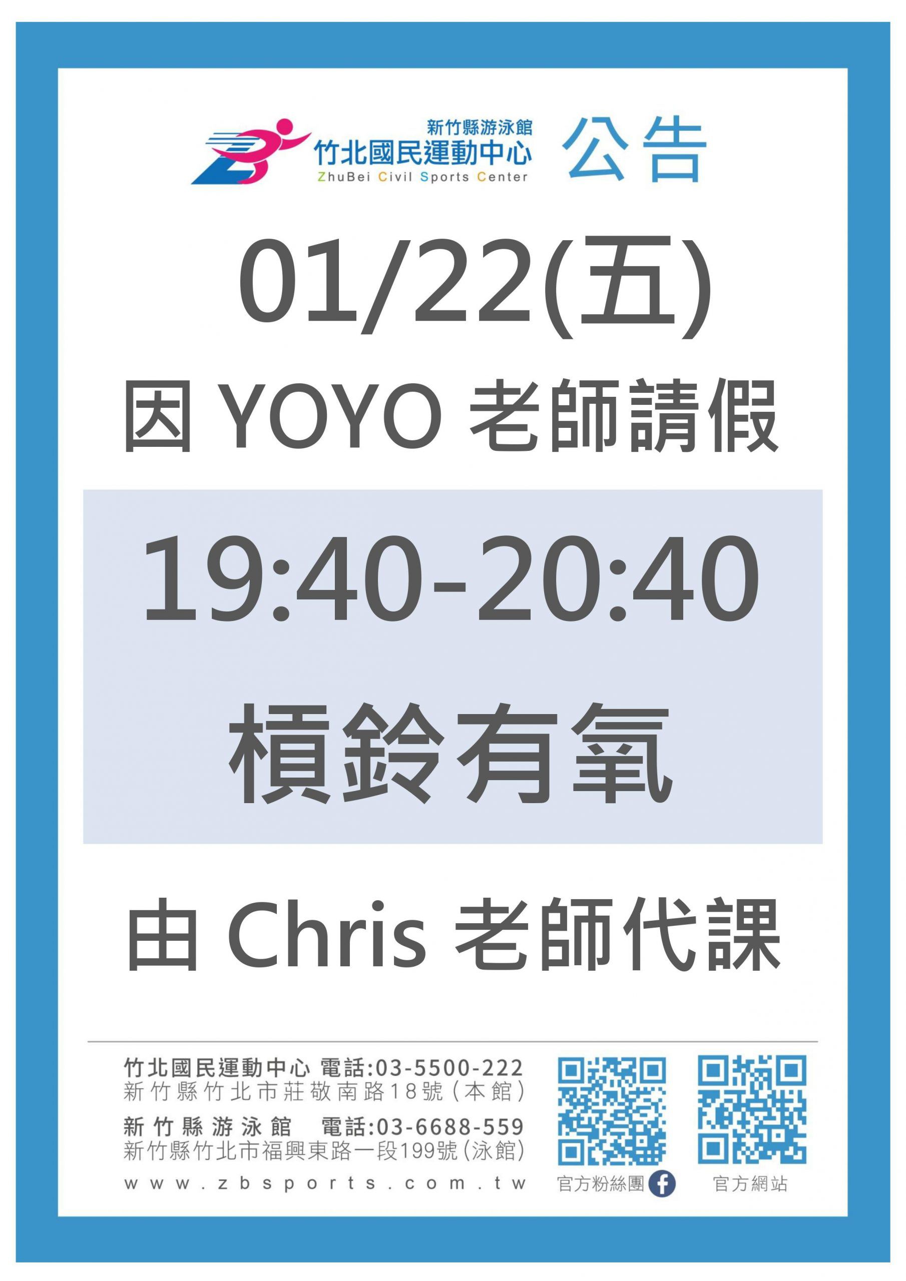 0122YOYO老師請假