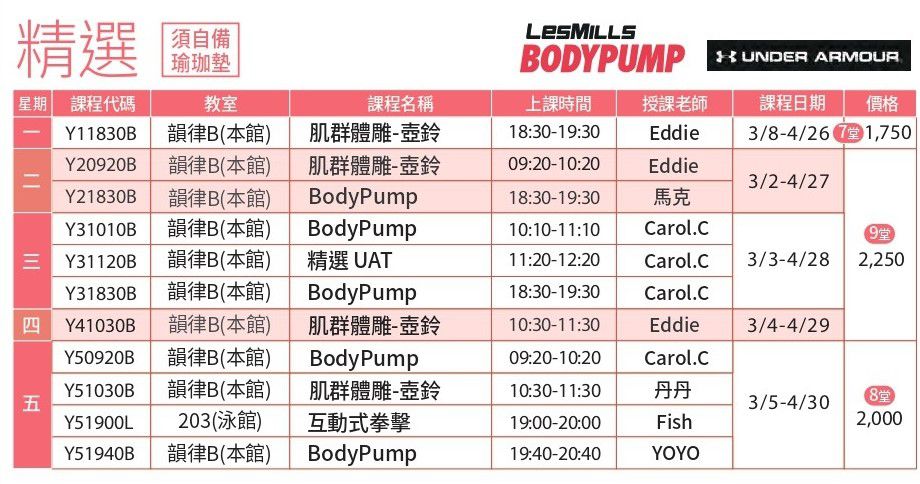 • 運動中心課程
