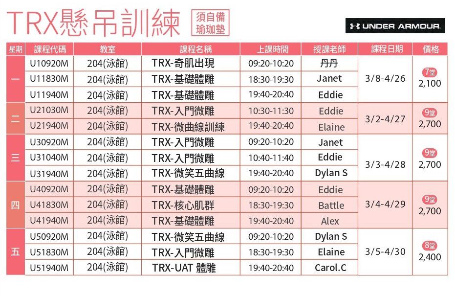 有氧課程異動公告