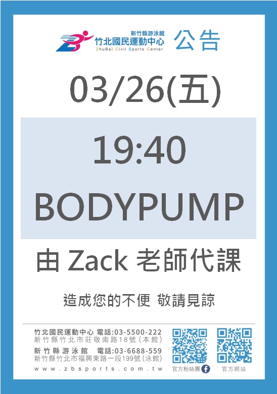 有氧課程異動公告