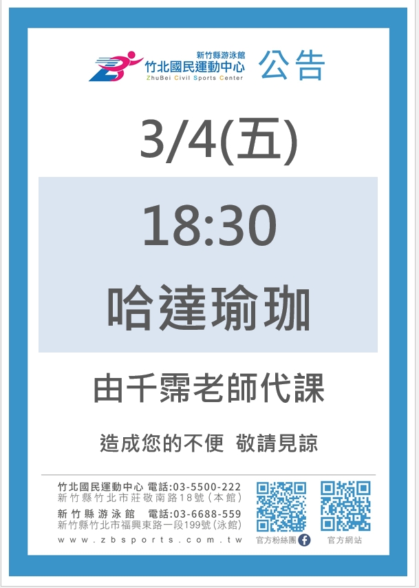 0304哈達瑜珈湘羚請假換千霈
