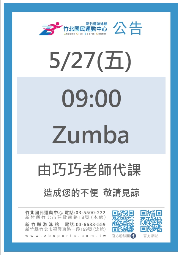 0527 Zumba Pauline請假換巧巧