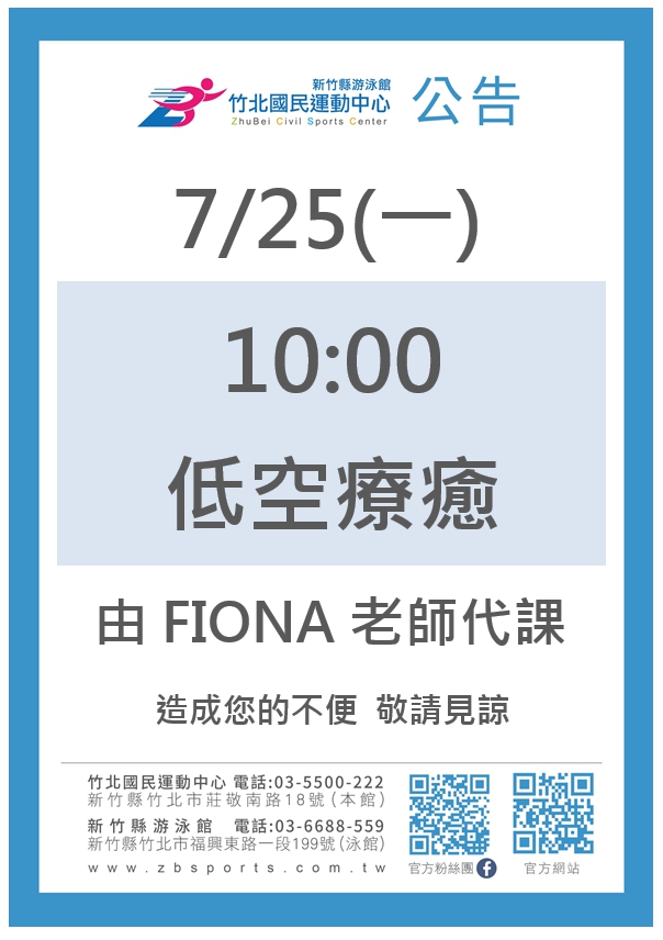 • 有氧課程異動公告