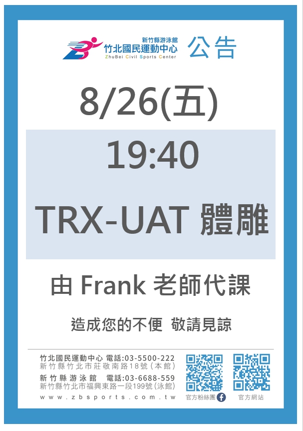 0826周五 TRX請假換Frank老師