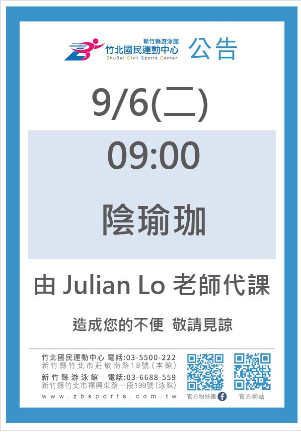 0906週二陰瑜珈請假換Julian Lo老師