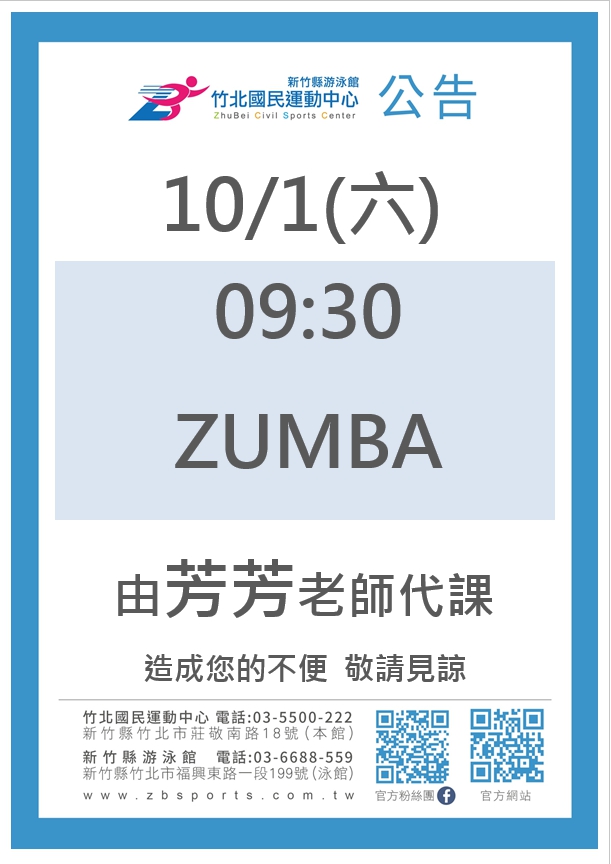 1001週一ZUMBA請假換芳芳老師