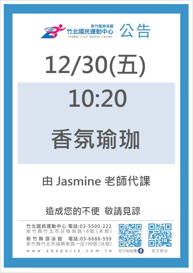 1230週五香氛瑜珈請假換Jasmine老師