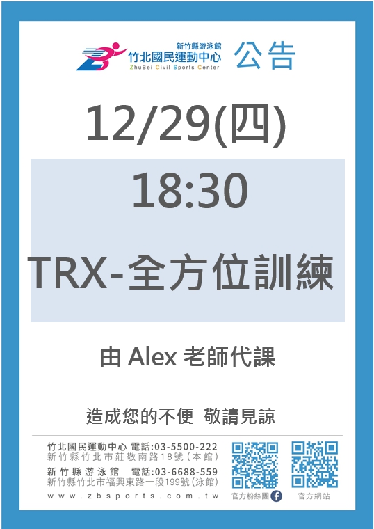 1229週四TRX請假換Alex老師