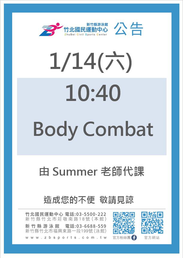 0114週六哈Body Combat請假Summer老師