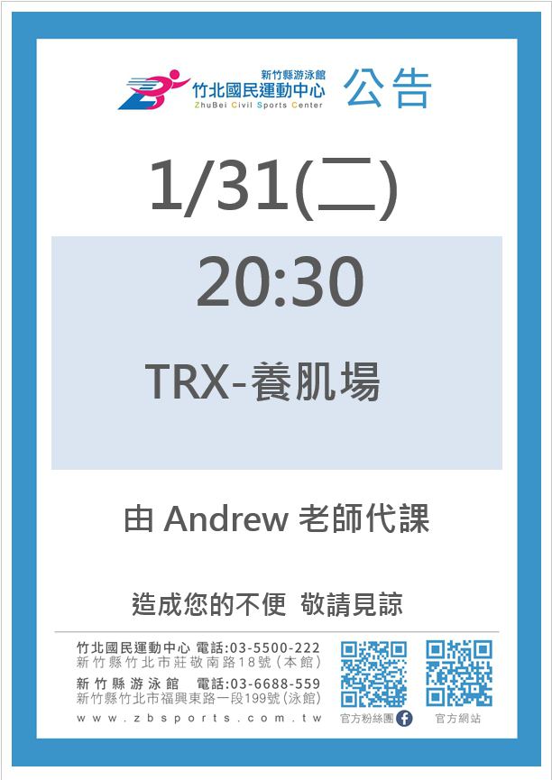 0131週二TRX-養肌場請假由Andrew老師代課