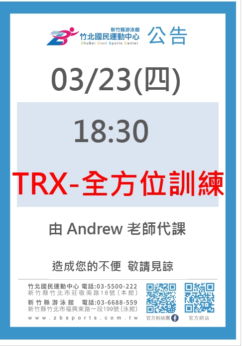 0323週四TRX-全方位訓練由Andrew老師代課