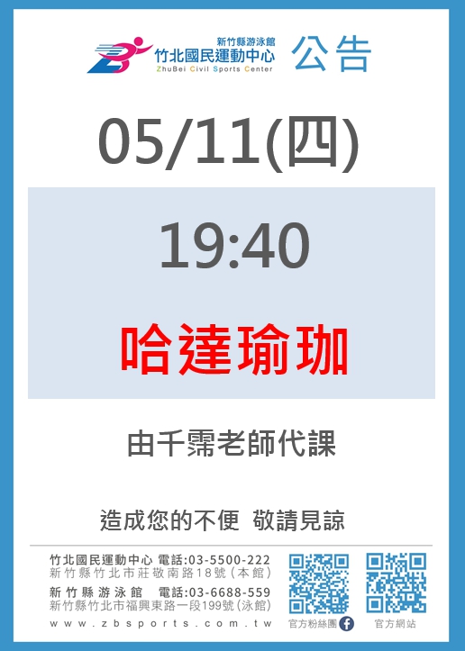 有氧課程異動公告