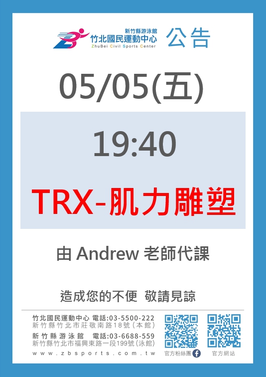 0505TRX由Andrew老師代課