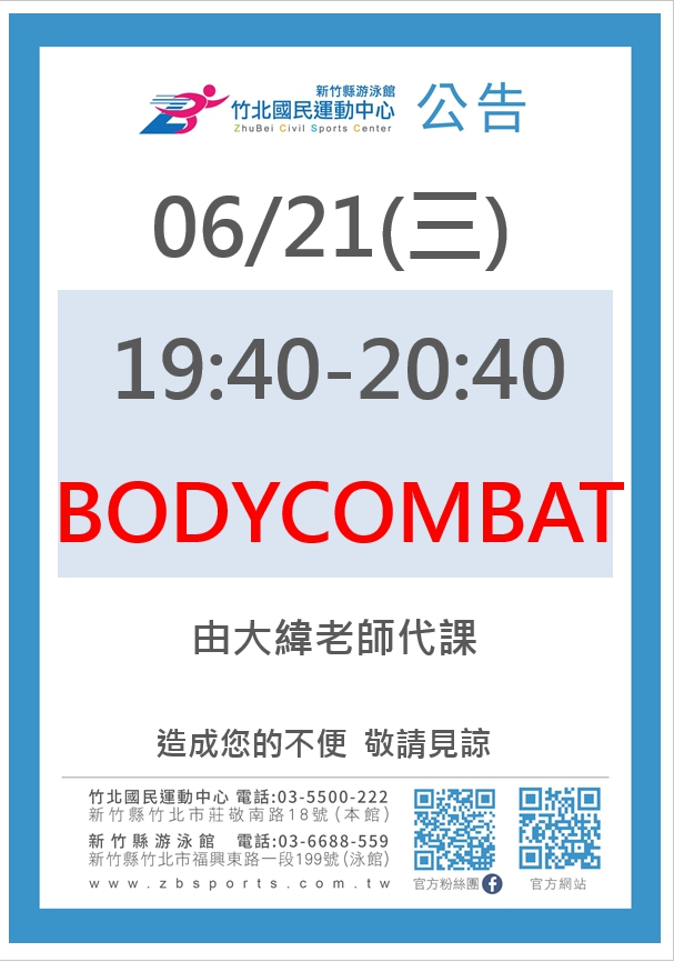 有氧課程異動公告