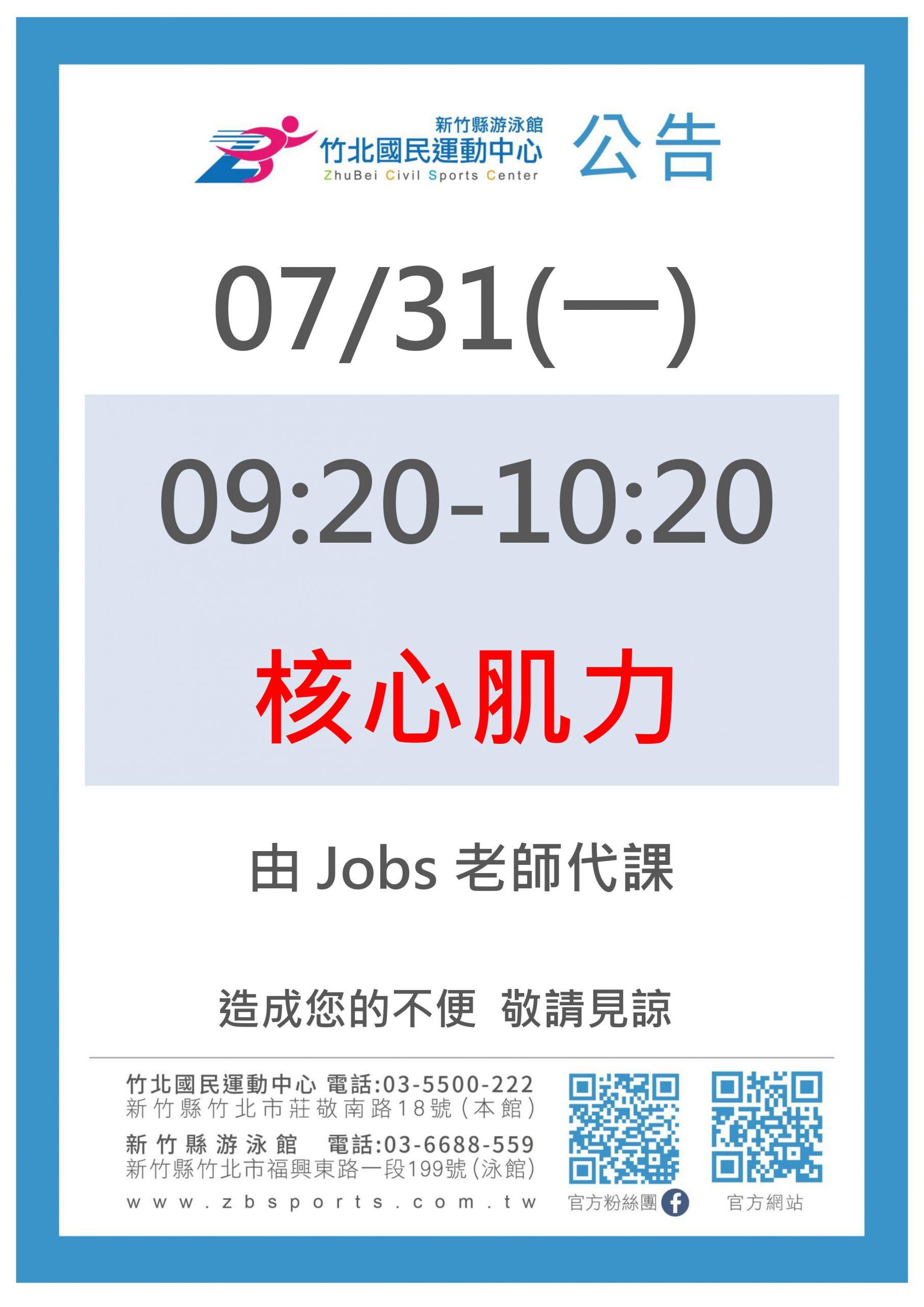 0731 核心肌力由Jobs老師代課