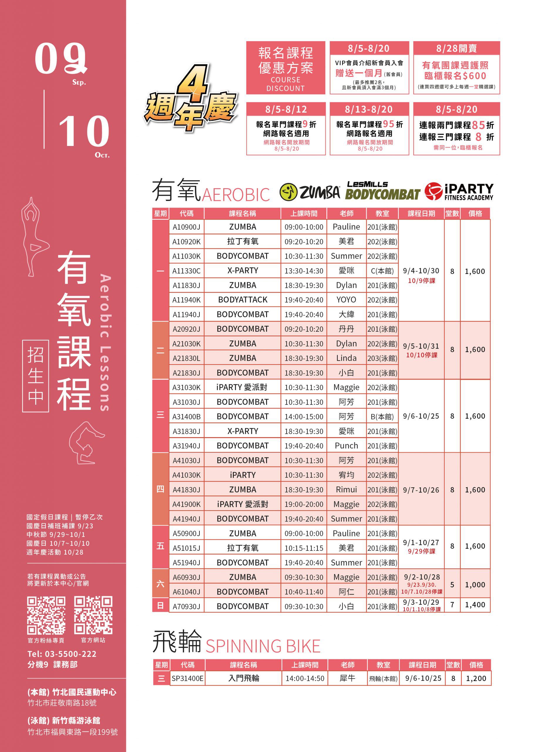 有氧課程異動公告