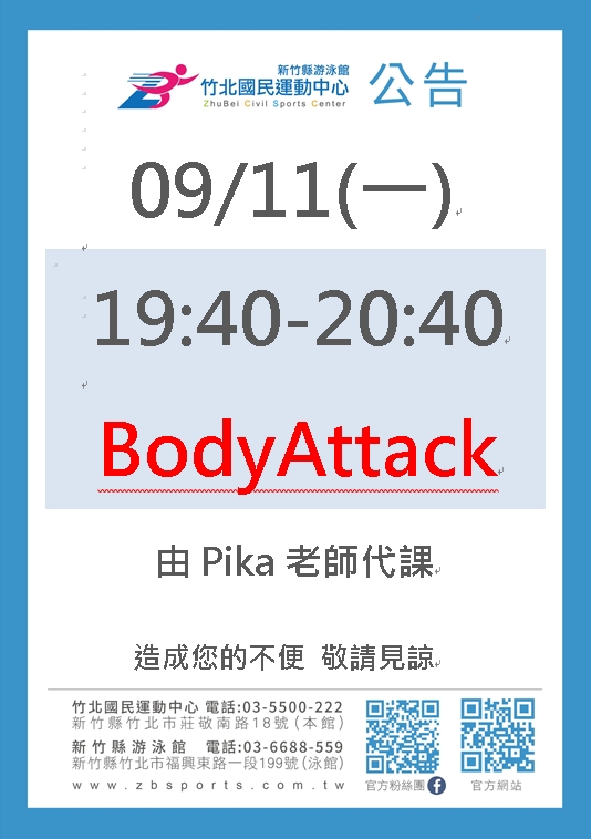 • 有氧課程異動公告