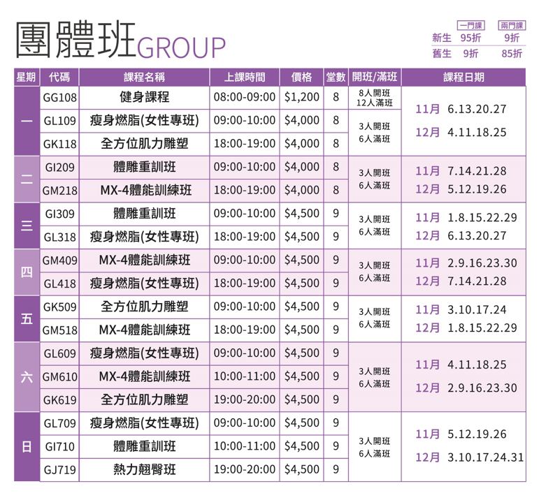 • 運動中心課程