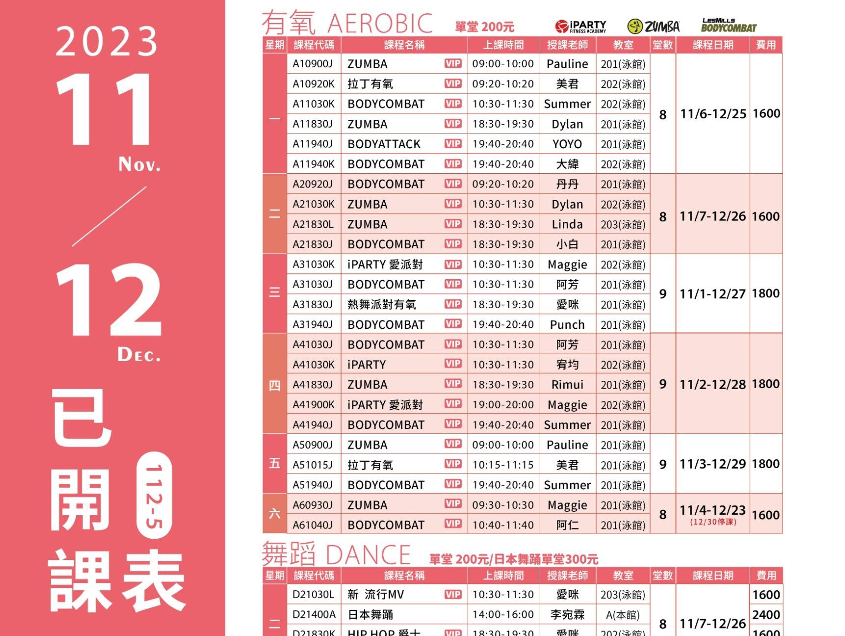 • 有氧課程異動公告