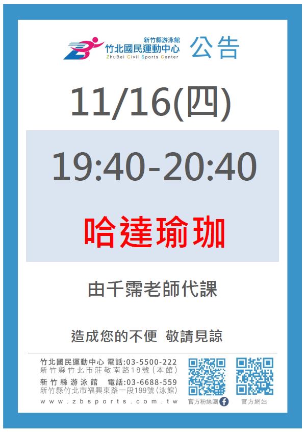 1116哈達瑜珈由千霈老師代課