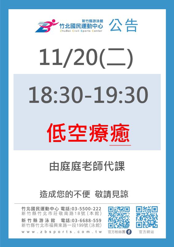 • 有氧課程異動公告