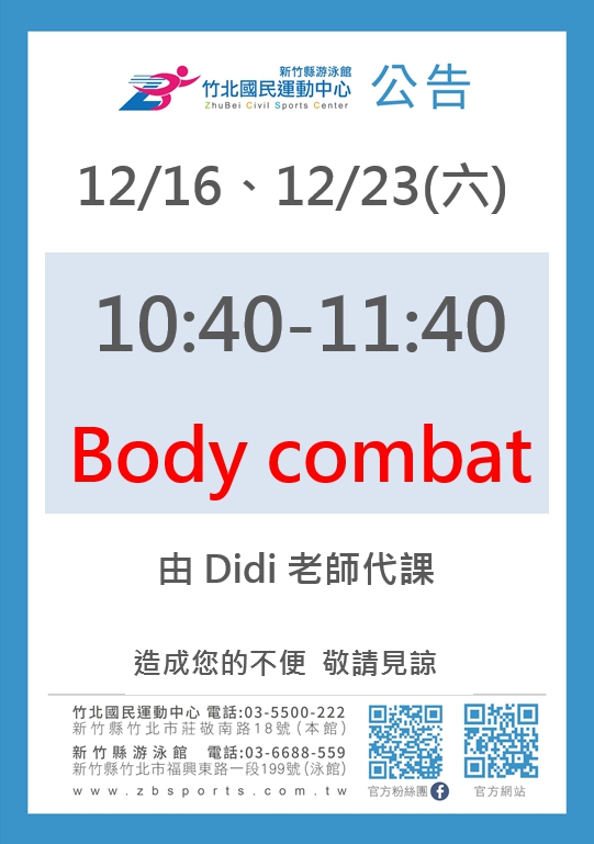 1216 1223Body combat由Didi老師代課