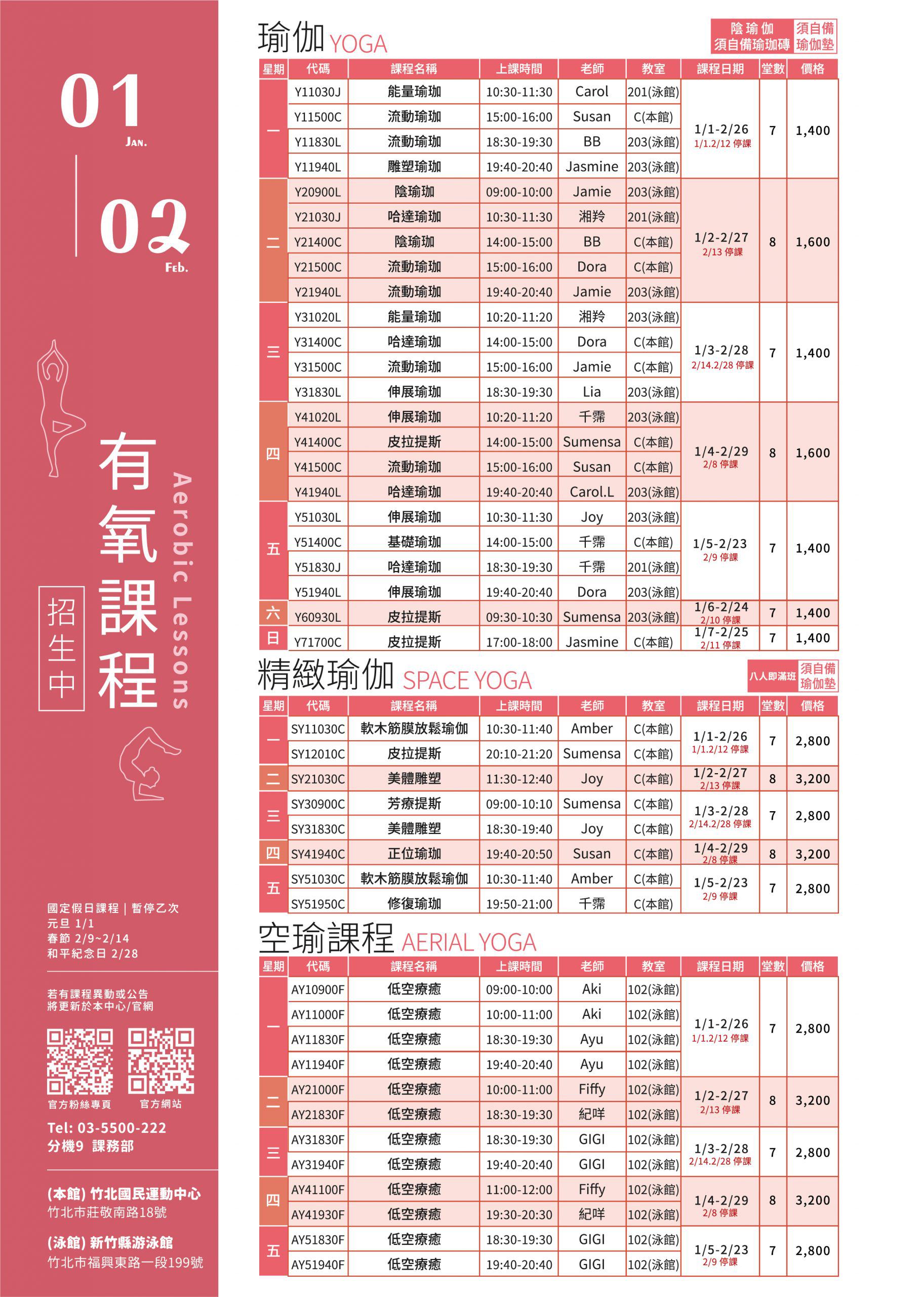 • 有氧課程異動公告