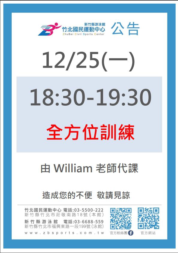 1225全方位訓練由william老師代課