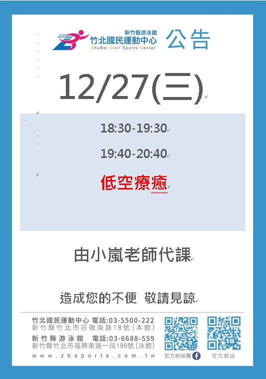 有氧課程異動公告