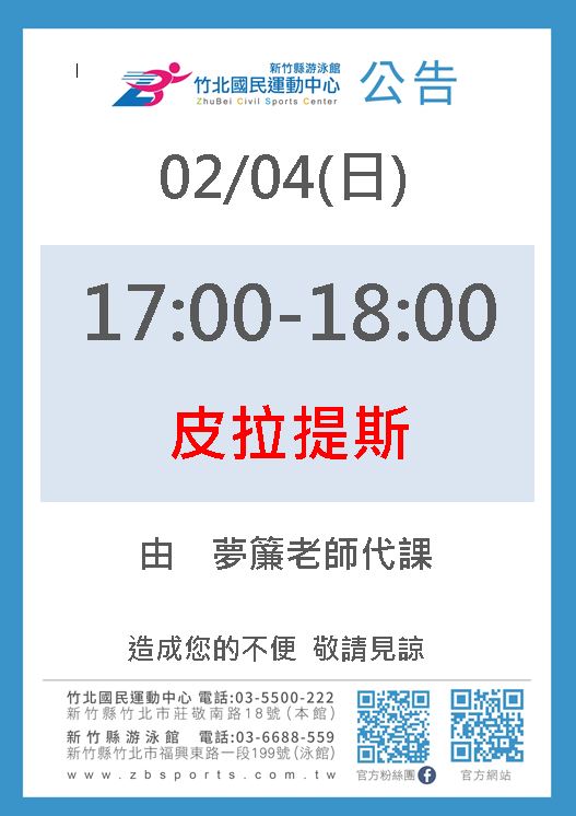 有氧課程異動公告