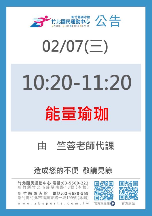 0207能量瑜珈由竺蓉老師代課