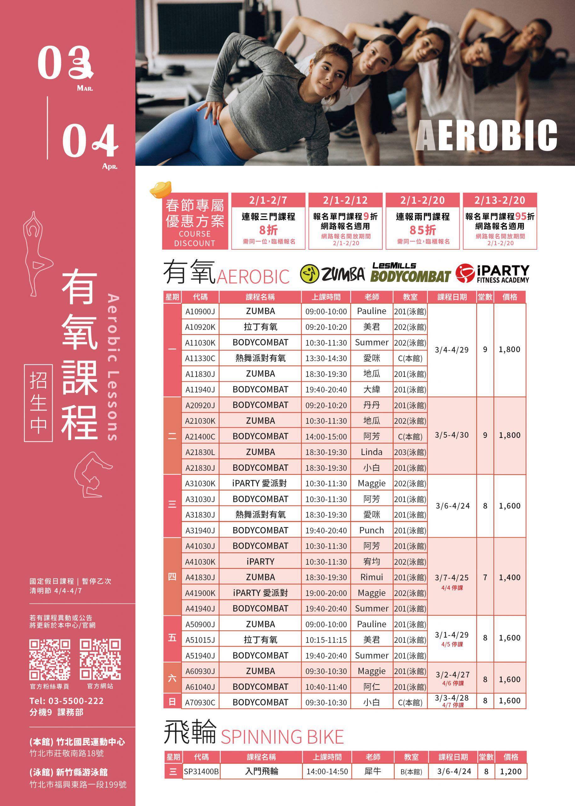 • 有氧課程異動公告