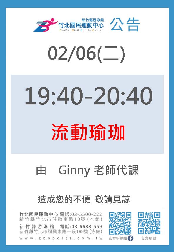 • 有氧課程異動公告