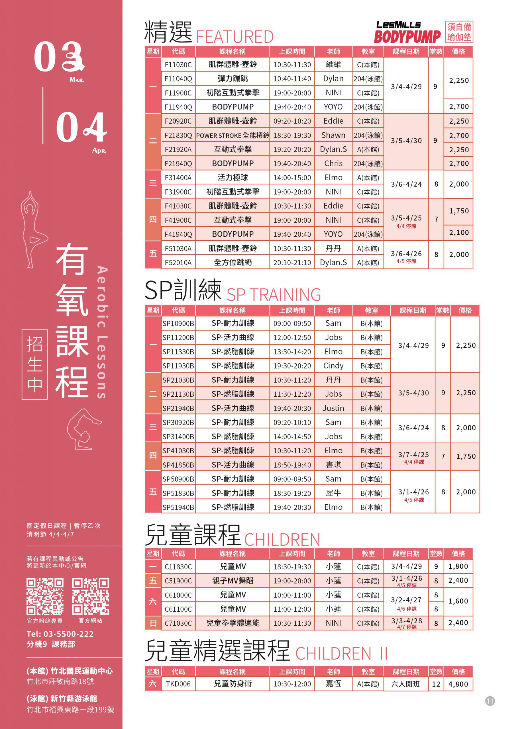 運動中心課程