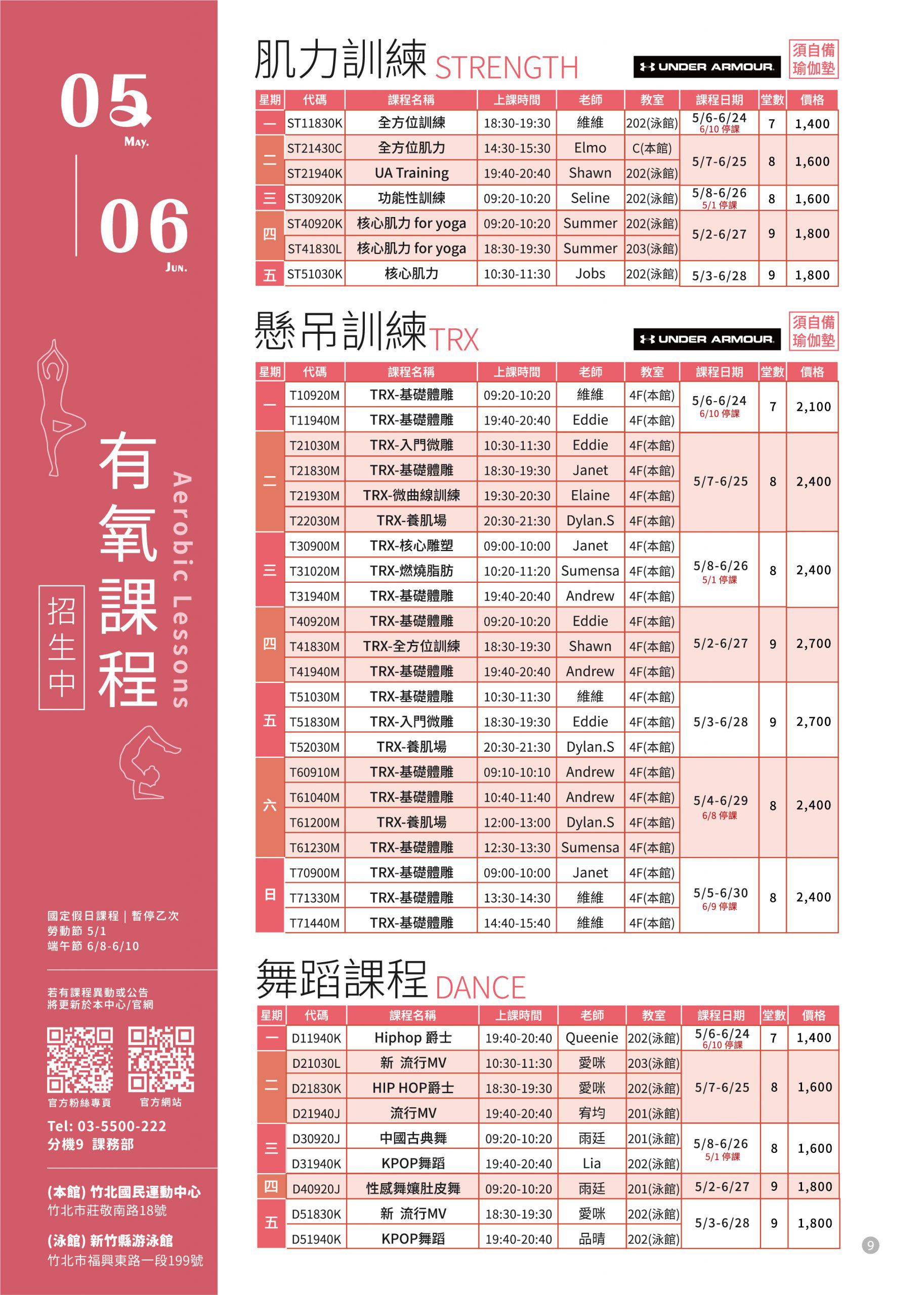 有氧課程異動公告
