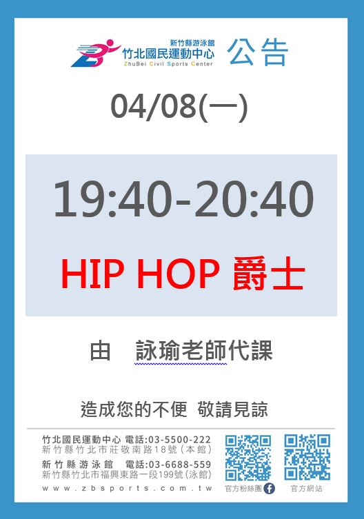 • 有氧課程異動公告