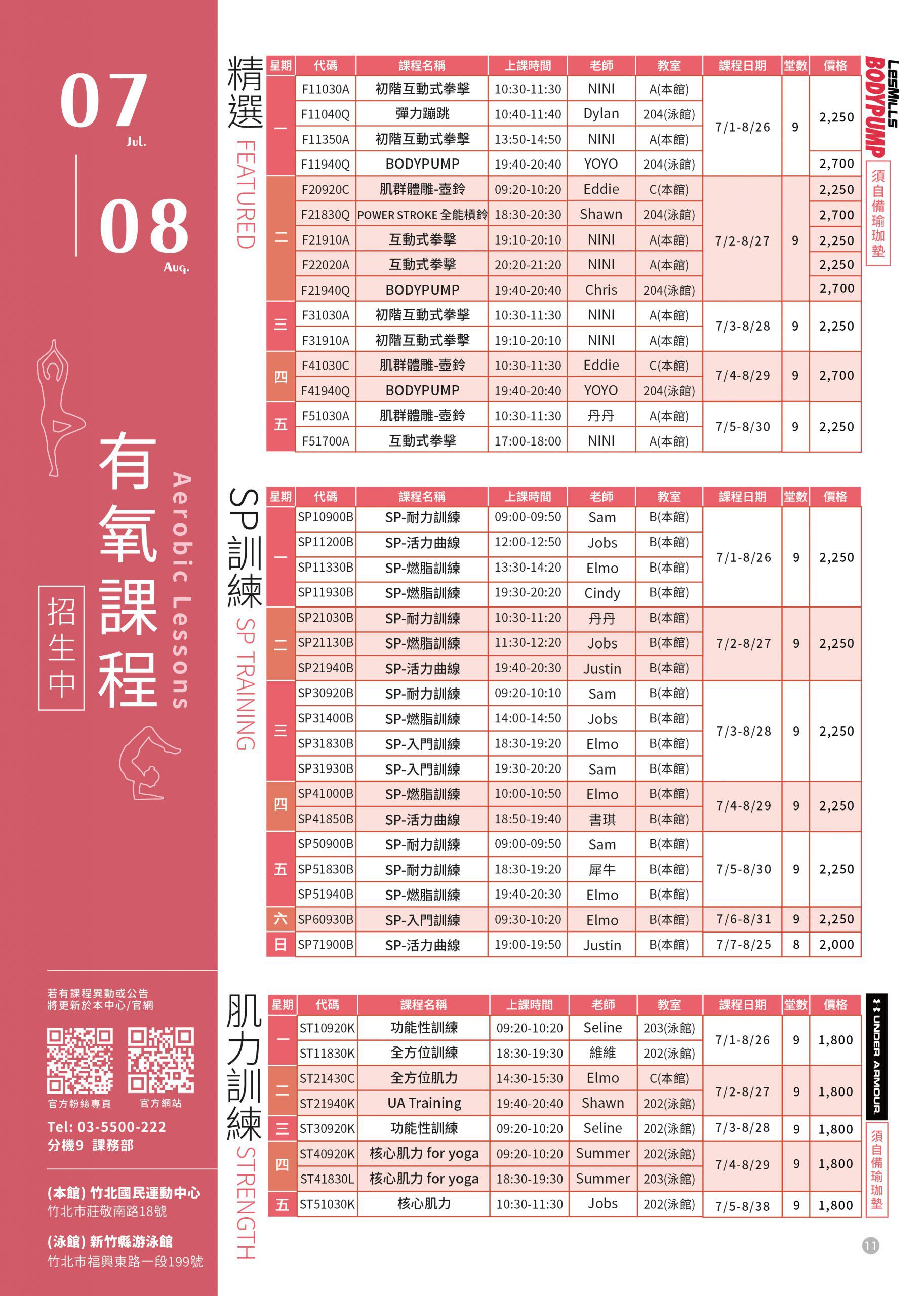 有氧課程異動公告