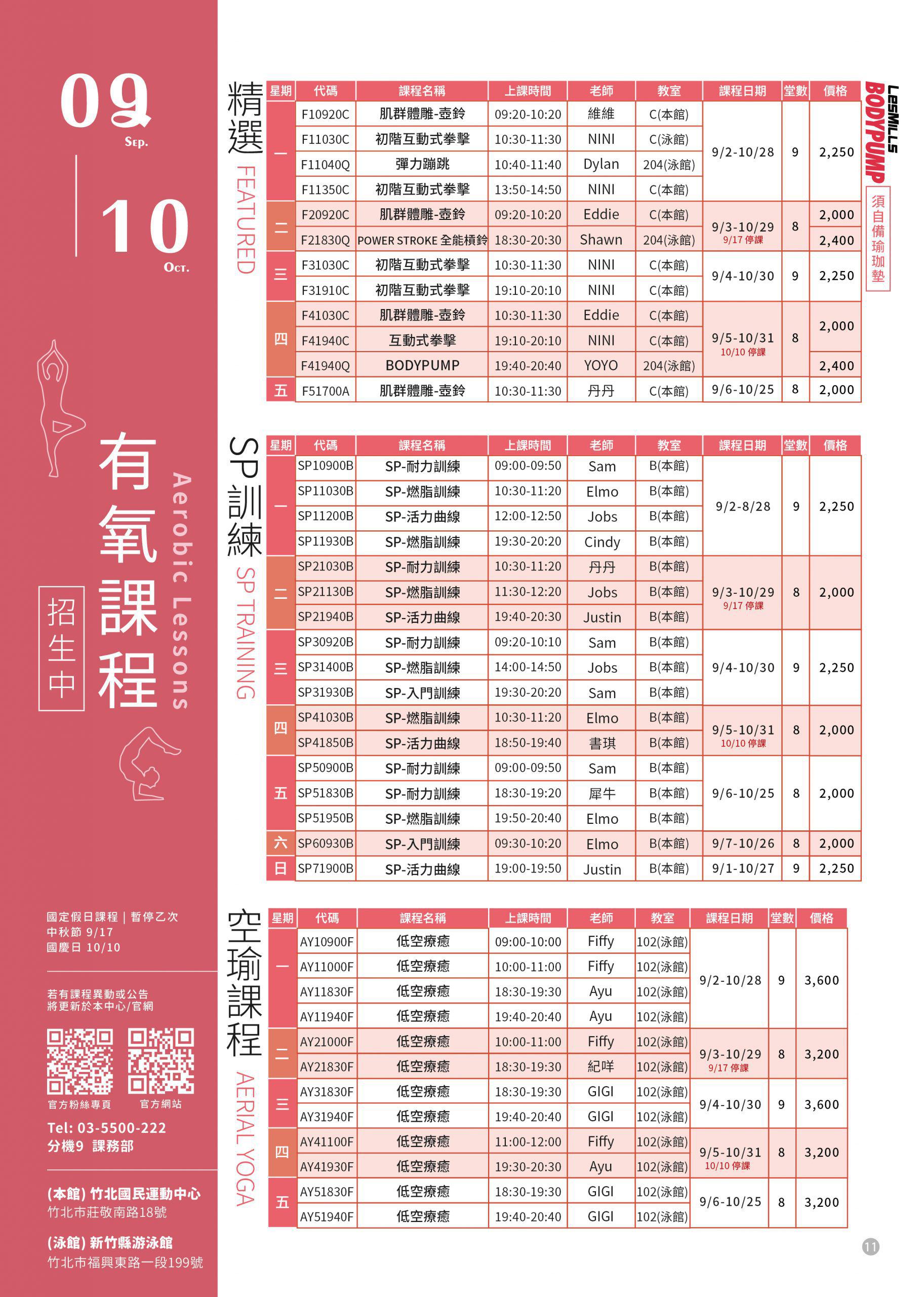 有氧課程異動公告