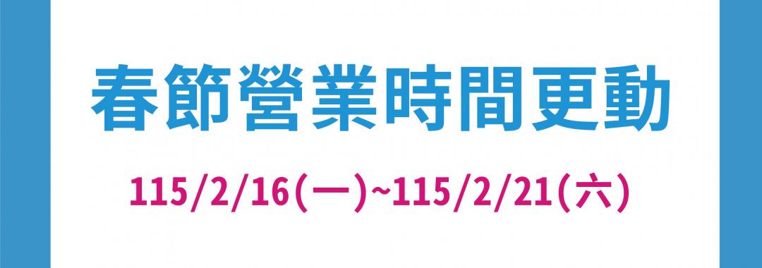 因應農曆新年期間,本中心營業時間調整如下: