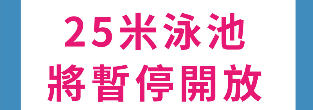 二、施工期間,25米泳池將暫停開放,其餘設施(如50米泳池及周邊池區)正常開放。