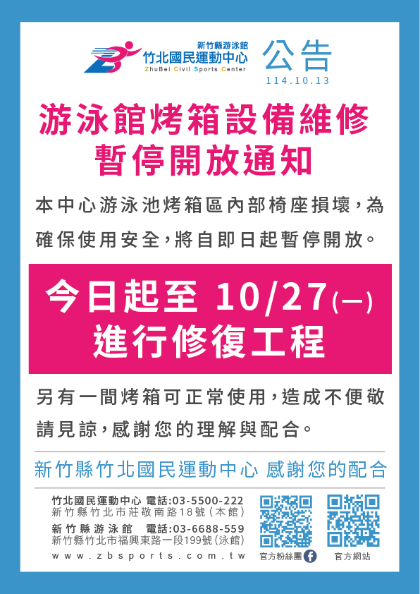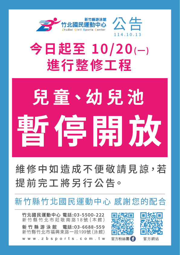如果有任何問題私訊竹北國民運動中心粉專 FB:竹北國民運動中心