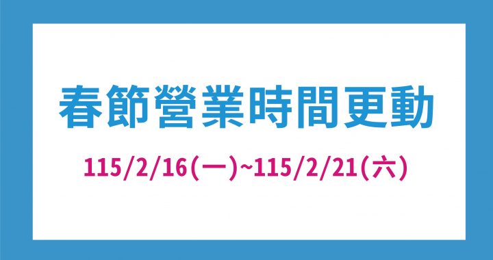 因應農曆新年期間,本中心營業時間調整如下: