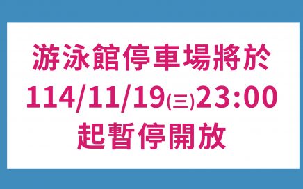 - 【公告|游泳館停車場暫停開放】 2025-11-04